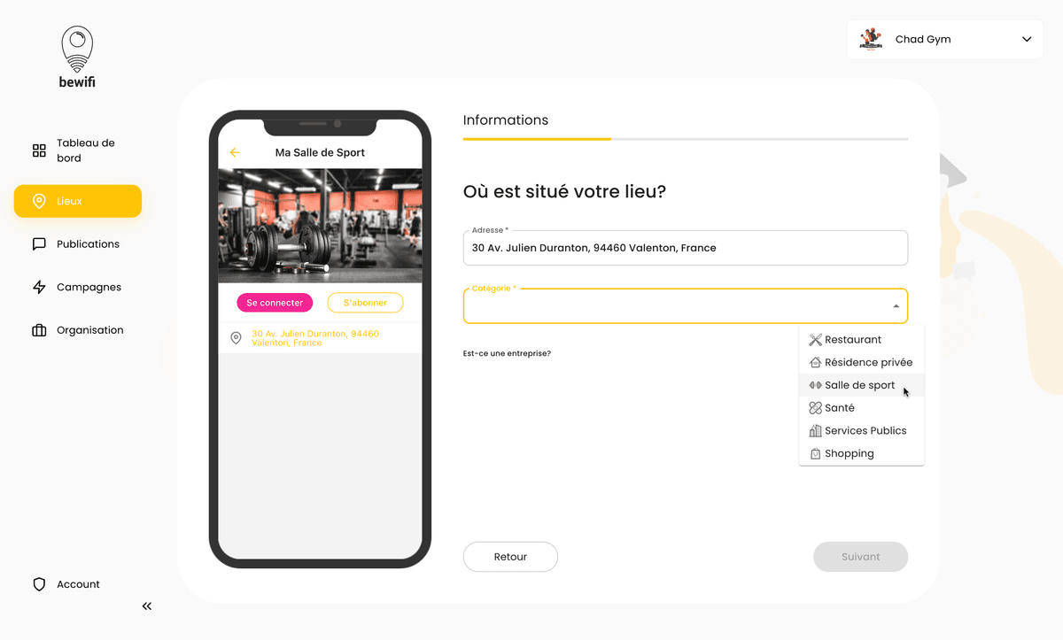 Ouvrez l'application.Sélectionnez le lieu.Connectez-vous !