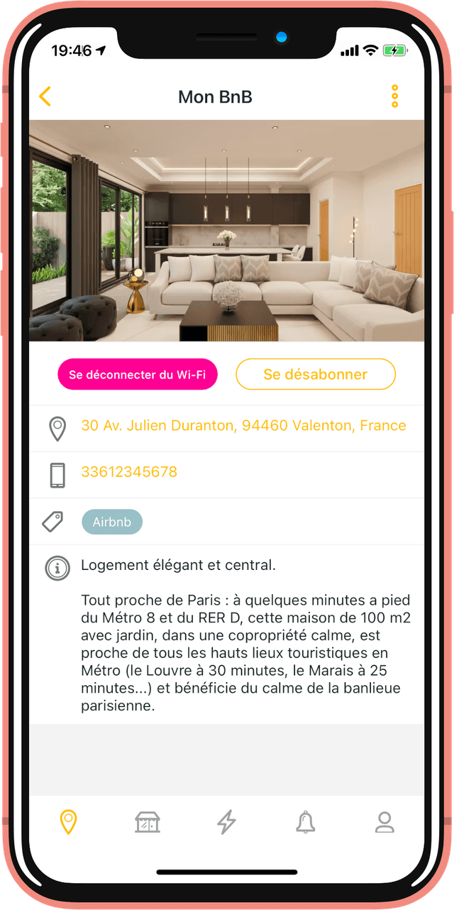 Votre fiche Lieu est visible et vos accès wifi sont ouverts uniquement aux personnes autorisées, et seulement pendant la durée du séjour. Ni plus ni moins !